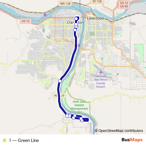 Bus 1 - Green Line: Full Schedule in Asotin