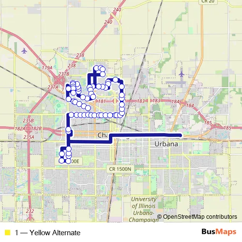 Bus 1 - Yellow Alternate in Urbana: Stops & Timetable