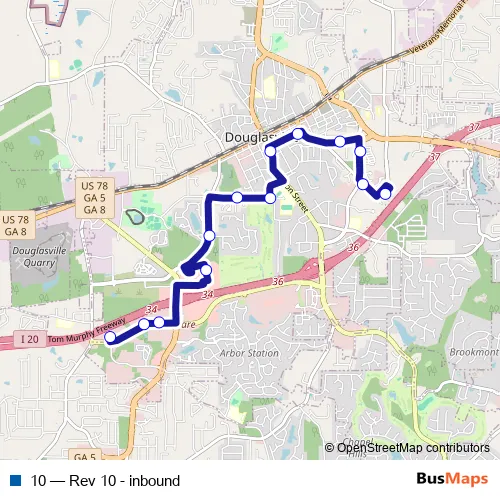Bus 10 - Rev 10 - inbound Schedule in Douglasville