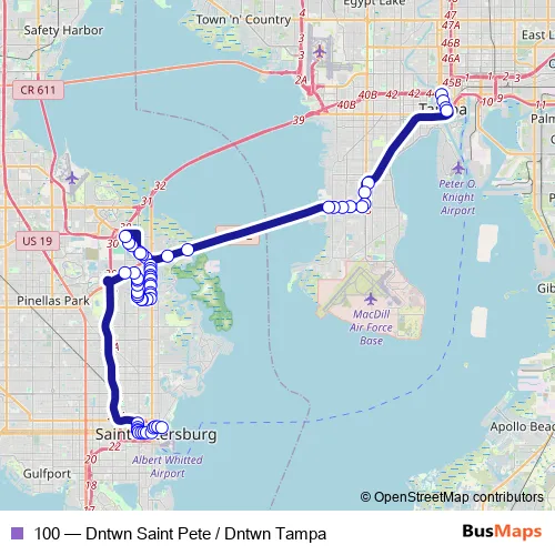 Click here to view the nearest 100 - Dntwn Saint Pete / Dntwn Tampa bus stop.