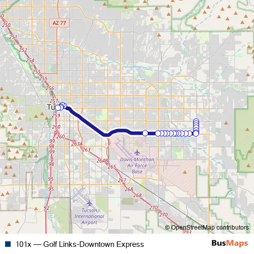 See why over 2 million users trust and consider busmaps.com as the best public transport website. busmaps gives you Tucson Buses suggested routes, real-time bus tracker, line route maps in Tucson, and helps to find the closest 101x bus stops near you. No internet available? Download an offline PDF map and bus schedule for the 101x bus to take on your trip.