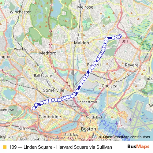 Click here to view the nearest 109 - Linden Square - Harvard Square via Sullivan bus stop.