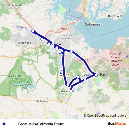 Click here to view the nearest 11 - Great Mills/California Route bus stop.