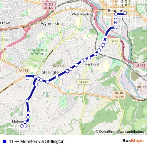 Click here to view the nearest 11 - Mohnton via Shillington bus stop.