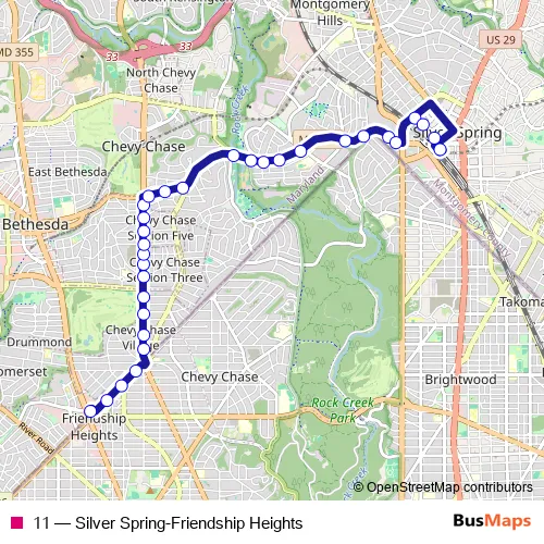 Outbound: Friendship Heights Station & BAY F – Silver Spring Station & BAY 105