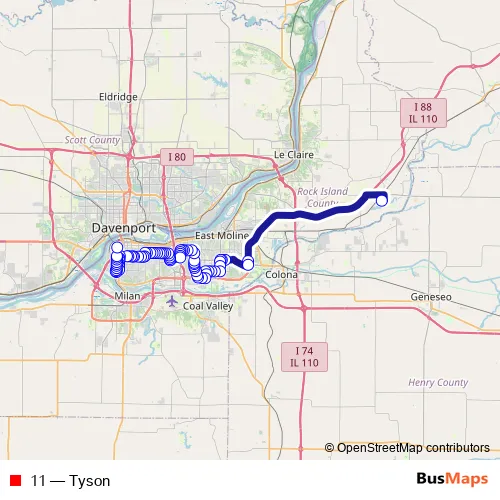 See why over 2 million users trust and consider busmaps.com as the best public transport website. busmaps gives you Rock Island Buses suggested routes, real-time bus tracker, line route maps in Rock Island, and helps to find the closest 11 bus stops near you. No internet available? Download an offline PDF map and bus schedule for the 11 bus to take on your trip.