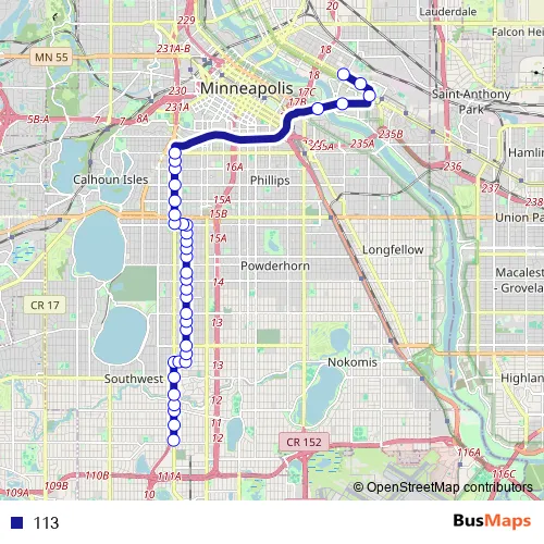 See why over 2 million users trust and consider busmaps.com as the best public transport website. busmaps gives you Minneapolis Buses suggested routes, real-time bus tracker, line route maps in Minneapolis, and helps to find the closest 113 bus stops near you. No internet available? Download an offline PDF map and bus schedule for the 113 bus to take on your trip.