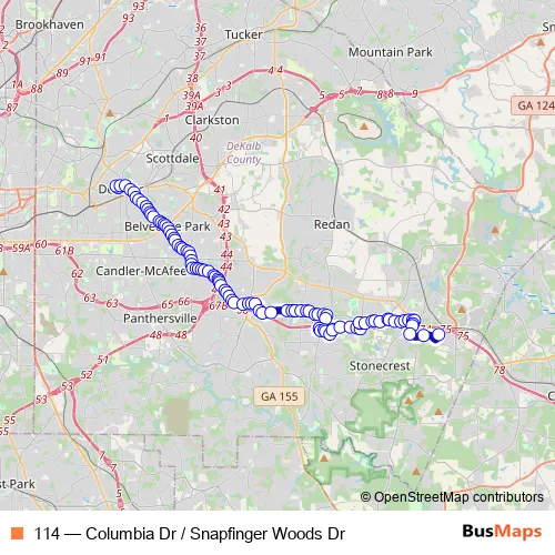 Click here to view the nearest 114 - Columbia Dr / Snapfinger Woods Dr bus stop.