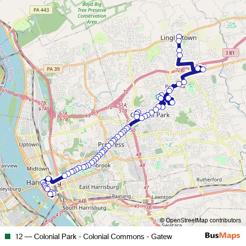 Bus 12 - Colonial Park - Colonial Commons - Gatew: Full Schedule in Harrisburg