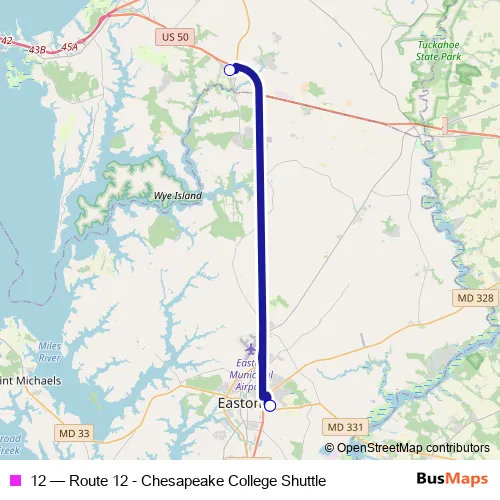 Click here to view the nearest 12 - Route 12 - Chesapeake College Shuttle bus stop.