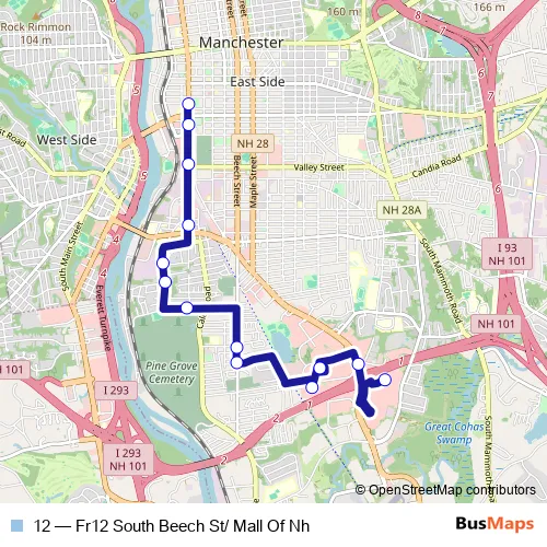 Bus 12 - Fr12 South Beech St/ Mall Of Nh: Full Schedule in Manchester