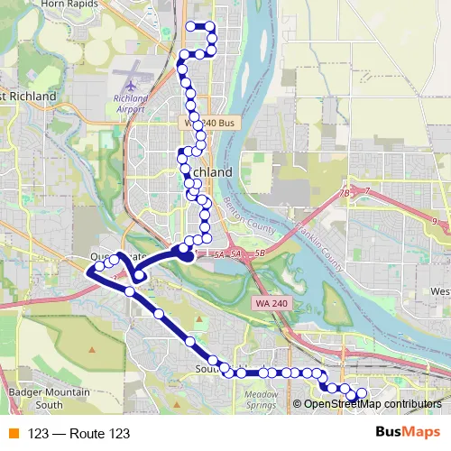See why over 2 million users trust and consider busmaps.com as the best public transport website. busmaps gives you Pasco Buses suggested routes, real-time bus tracker, line route maps in Pasco, and helps to find the closest 123 bus stops near you. No internet available? Download an offline PDF map and bus schedule for the 123 bus to take on your trip.