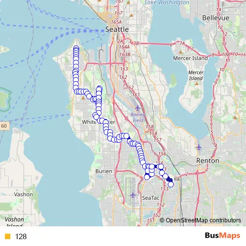 See why over 2 million users trust and consider busmaps.com as the best public transport website. busmaps gives you Seattle Buses suggested routes, real-time bus tracker, line route maps in Seattle, and helps to find the closest 128 bus stops near you. No internet available? Download an offline PDF map and bus schedule for the 128 bus to take on your trip.