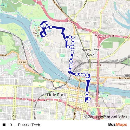 See why over 2 million users trust and consider busmaps.com as the best public transport website. busmaps gives you Little Rock Buses suggested routes, real-time bus tracker, line route maps in Little Rock, and helps to find the closest 13 bus stops near you. No internet available? Download an offline PDF map and bus schedule for the 13 bus to take on your trip.