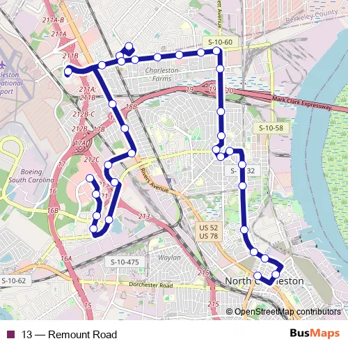 See why over 2 million users trust and consider busmaps.com as the best public transport website. busmaps gives you Charleston Buses suggested routes, real-time bus tracker, line route maps in Charleston, and helps to find the closest 13 bus stops near you. No internet available? Download an offline PDF map and bus schedule for the 13 bus to take on your trip.