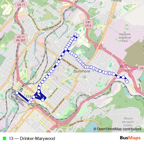 See why over 2 million users trust and consider busmaps.com as the best public transport website. busmaps gives you Scranton Buses suggested routes, real-time bus tracker, line route maps in Scranton, and helps to find the closest 13 bus stops near you. No internet available? Download an offline PDF map and bus schedule for the 13 bus to take on your trip.