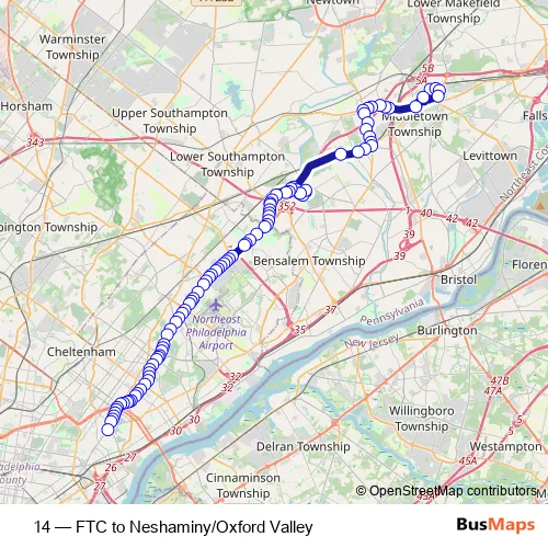 Septa 14 FTC to Neshaminy/Oxford Valley Bus
