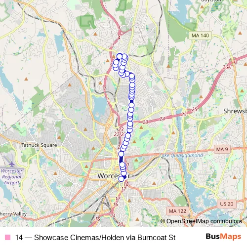 14 Bus - Showcase Cinemas/Holden via Burncoat St