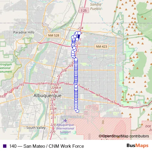 See why over 2 million users trust and consider busmaps.com as the best public transport website. busmaps gives you Albuquerque Buses suggested routes, real-time bus tracker, line route maps in Albuquerque, and helps to find the closest 140 bus stops near you. No internet available? Download an offline PDF map and bus schedule for the 140 bus to take on your trip.