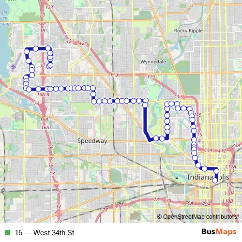 Bus 15 - West 34th St in Indianapolis: Stops & Timetable