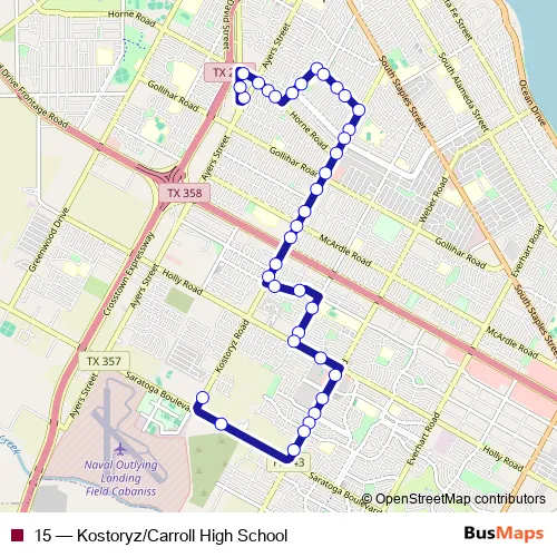 Bus 15 - Kostoryz/Carroll High School: Full Schedule in Corpus Christi