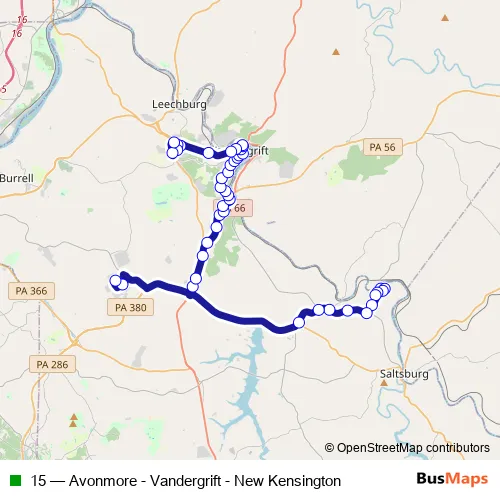 Bus 15 - Avonmore - Vandergrift - New Kensington in Oklahoma: Stops & Timetable