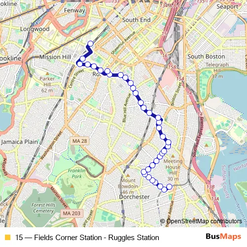 See why over 2 million users trust and consider busmaps.com as the best public transport website. busmaps gives you Boston Buses suggested routes, real-time bus tracker, line route maps in Boston, and helps to find the closest 15 bus stops near you. No internet available? Download an offline PDF map and bus schedule for the 15 bus to take on your trip.