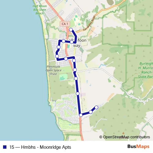 See why over 2 million users trust and consider busmaps.com as the best public transport website. busmaps gives you Half Moon Bay Buses suggested routes, real-time bus tracker, line route maps in Half Moon Bay, and helps to find the closest 15 bus stops near you. No internet available? Download an offline PDF map and bus schedule for the 15 bus to take on your trip.