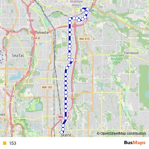 See why over 2 million users trust and consider busmaps.com as the best public transport website. busmaps gives you Renton Buses suggested routes, real-time bus tracker, line route maps in Renton, and helps to find the closest 153 bus stops near you. No internet available? Download an offline PDF map and bus schedule for the 153 bus to take on your trip.