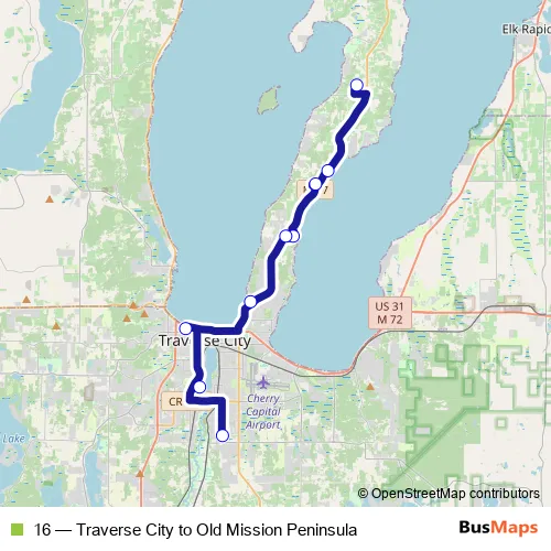 Click here to view the nearest 16 - Traverse City to Old Mission Peninsula bus stop.