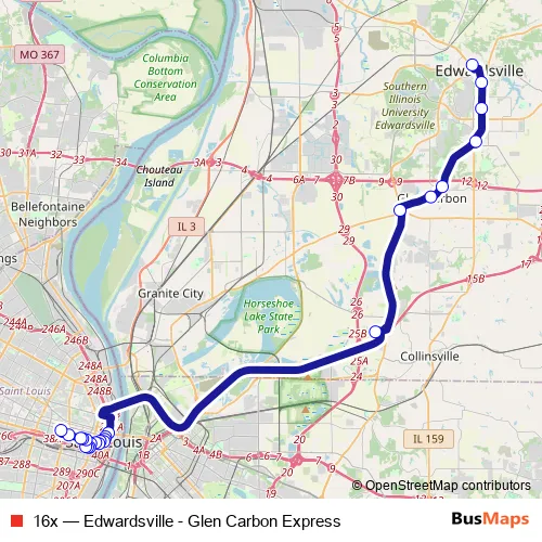 Bus 16x - Edwardsville - Glen Carbon Express in St. Louis: Stops & Timetable