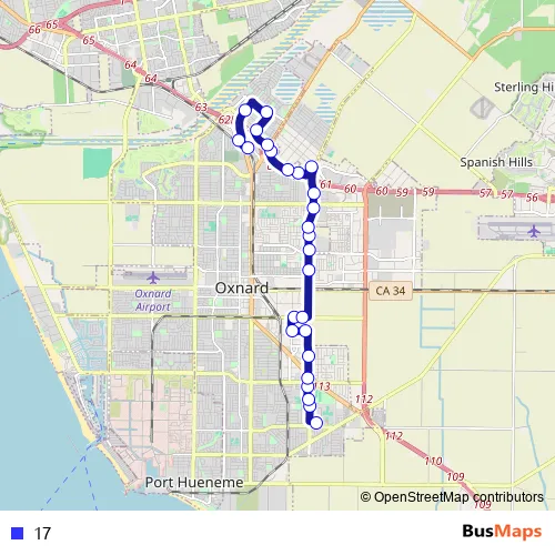 See why over 2 million users trust and consider busmaps.com as the best public transport website. busmaps gives you Ventura Buses suggested routes, real-time bus tracker, line route maps in Ventura, and helps to find the closest 17 bus stops near you. No internet available? Download an offline PDF map and bus schedule for the 17 bus to take on your trip.