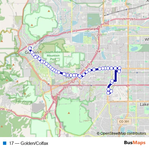 See why over 2 million users trust and consider busmaps.com as the best public transport website. busmaps gives you Golden Buses suggested routes, real-time bus tracker, line route maps in Golden, and helps to find the closest 17 bus stops near you. No internet available? Download an offline PDF map and bus schedule for the 17 bus to take on your trip.