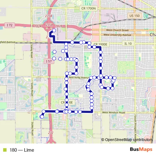 See why over 2 million users trust and consider busmaps.com as the best public transport website. busmaps gives you Urbana Buses suggested routes, real-time bus tracker, line route maps in Urbana, and helps to find the closest 180 bus stops near you. No internet available? Download an offline PDF map and bus schedule for the 180 bus to take on your trip.