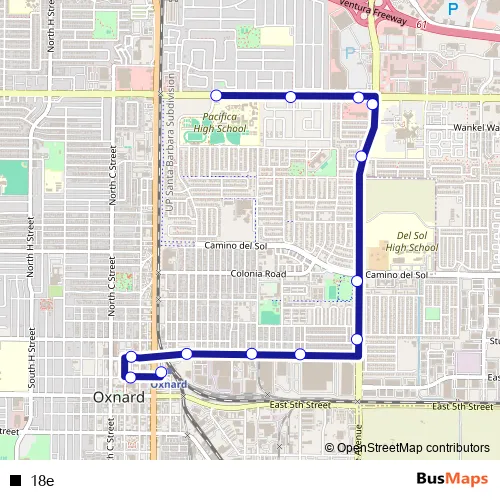 See why over 2 million users trust and consider busmaps.com as the best public transport website. busmaps gives you Ventura Buses suggested routes, real-time bus tracker, line route maps in Ventura, and helps to find the closest 18e bus stops near you. No internet available? Download an offline PDF map and bus schedule for the 18e bus to take on your trip.