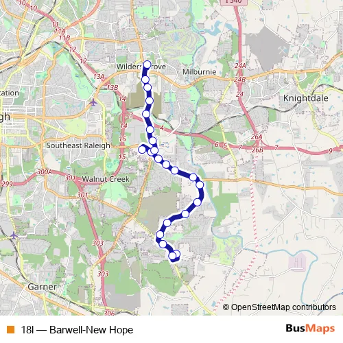 See why over 2 million users trust and consider busmaps.com as the best public transport website. busmaps gives you Raleigh Buses suggested routes, real-time bus tracker, line route maps in Raleigh, and helps to find the closest 18l bus stops near you. No internet available? Download an offline PDF map and bus schedule for the 18l bus to take on your trip.