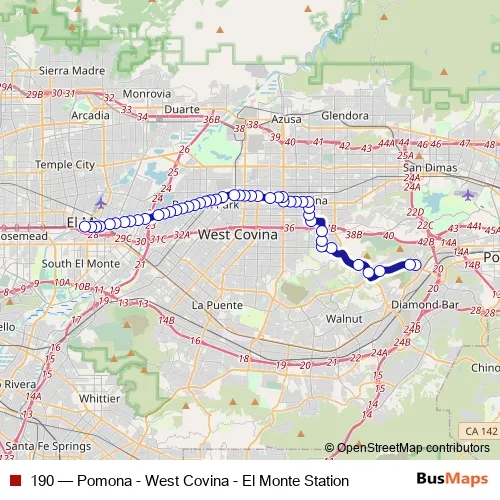 Click here to view the nearest 190 - Pomona - West Covina - El Monte Station bus stop.