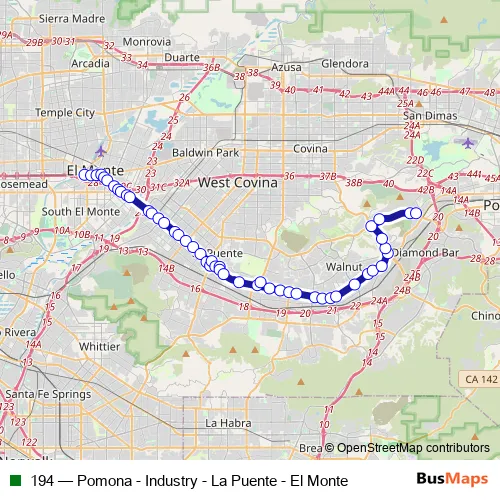 See why over 2 million users trust and consider busmaps.com as the best public transport website. busmaps gives you El Monte Buses suggested routes, real-time bus tracker, line route maps in El Monte, and helps to find the closest 194 bus stops near you. No internet available? Download an offline PDF map and bus schedule for the 194 bus to take on your trip.