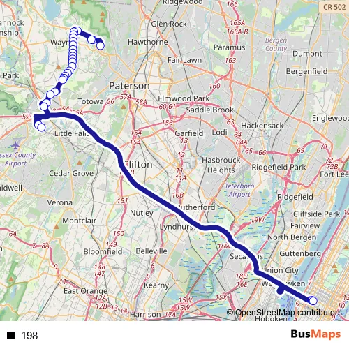 See why over 2 million users trust and consider busmaps.com as the best public transport website. busmaps gives you Paterson Buses suggested routes, real-time bus tracker, line route maps in Paterson, and helps to find the closest 198 bus stops near you. No internet available? Download an offline PDF map and bus schedule for the 198 bus to take on your trip.