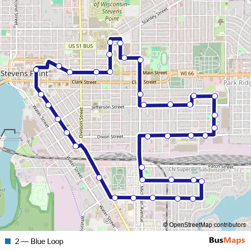 Bus 2 - Blue Loop in Stevens Point: Stops & Timetable