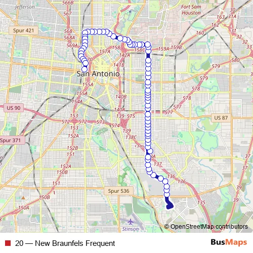 Bus 20 - New Braunfels Frequent: Full Schedule in San Antonio