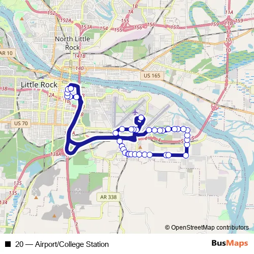 See why over 2 million users trust and consider busmaps.com as the best public transport website. busmaps gives you Little Rock Buses suggested routes, real-time bus tracker, line route maps in Little Rock, and helps to find the closest 20 bus stops near you. No internet available? Download an offline PDF map and bus schedule for the 20 bus to take on your trip.