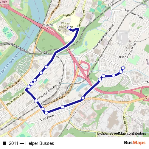See why over 2 million users trust and consider busmaps.com as the best public transport website. busmaps gives you Wilkes-Barre Buses suggested routes, real-time bus tracker, line route maps in Wilkes-Barre, and helps to find the closest 2011 bus stops near you. No internet available? Download an offline PDF map and bus schedule for the 2011 bus to take on your trip.