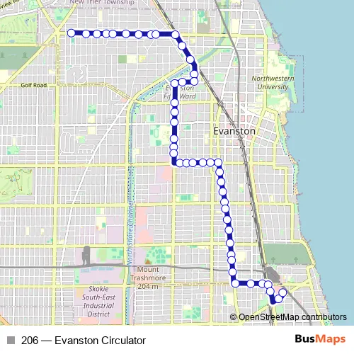 See why over 2 million users trust and consider busmaps.com as the best public transport website. busmaps gives you Evanston Buses suggested routes, real-time bus tracker, line route maps in Evanston, and helps to find the closest 206 bus stops near you. No internet available? Download an offline PDF map and bus schedule for the 206 bus to take on your trip.