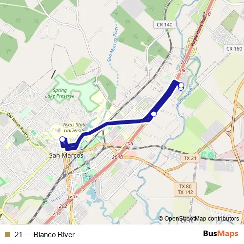 Bus 21 - Blanco River Schedule in San Marcos