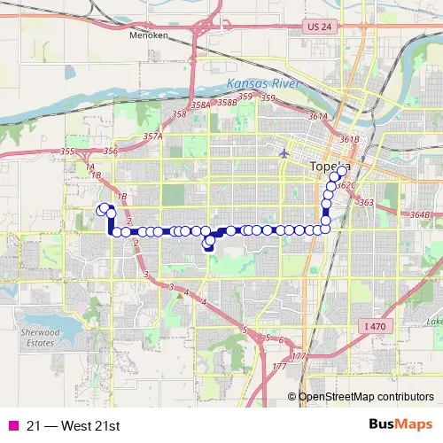 See why over 2 million users trust and consider busmaps.com as the best public transport website. busmaps gives you Topeka Buses suggested routes, real-time bus tracker, line route maps in Topeka, and helps to find the closest 21 bus stops near you. No internet available? Download an offline PDF map and bus schedule for the 21 bus to take on your trip.