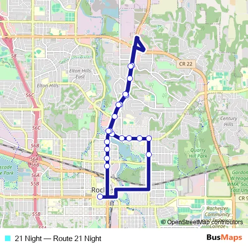 See why over 2 million users trust and consider busmaps.com as the best public transport website. busmaps gives you Rochester Buses suggested routes, real-time bus tracker, line route maps in Rochester, and helps to find the closest 21 Night bus stops near you. No internet available? Download an offline PDF map and bus schedule for the 21 Night bus to take on your trip.