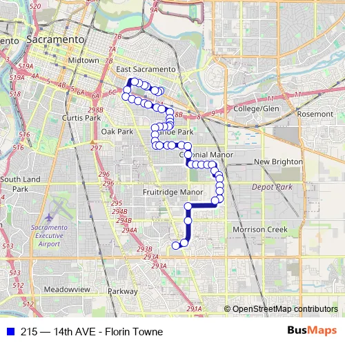 Bus 215 - 14th AVE - Florin Towne: Full Schedule in Sacramento