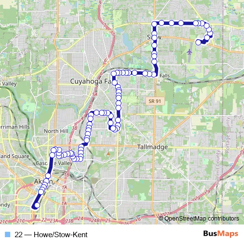 Bus 22 - Howe/Stow-Kent in Akron: Stops & Timetable