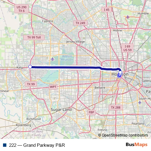 See why over 2 million users trust and consider busmaps.com as the best public transport website. busmaps gives you Houston Buses suggested routes, real-time bus tracker, line route maps in Houston, and helps to find the closest 222 bus stops near you. No internet available? Download an offline PDF map and bus schedule for the 222 bus to take on your trip.